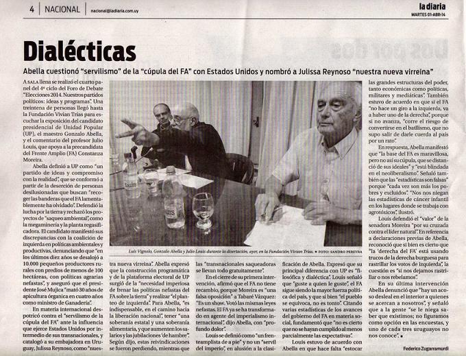 40º Ciclo Foro de Debate: Elecciones 2014. Nuestros partidos políticos: ideas y programas. Unidad Popular